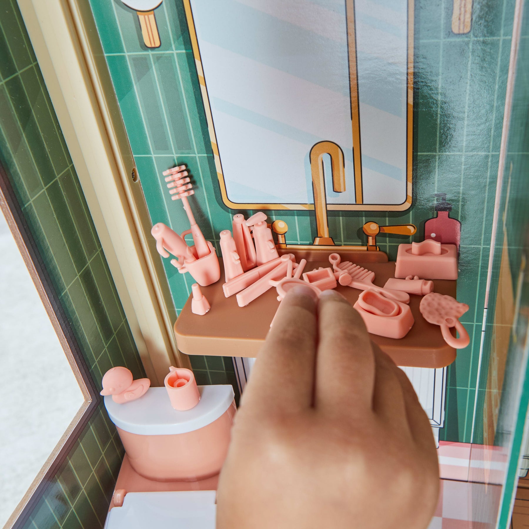 • Comprehensive set of 50 accessories, including 8 furniture pieces, 21 bathroom accessories, 20 kitchen accessories, and 1 fabric pillow, designed to enhance realistic play scenarios