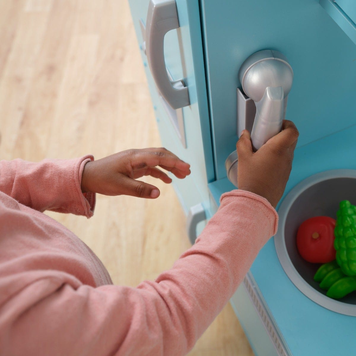 The SwingsetPlus White Vintage Play Kitchen offers young chefs a sophisticated and engaging environment to explore culinary creativity. Designed with attention to detail, this play kitchen features stainless-steel-look fixtures that add a modern touch while maintaining a classic aesthetic. Children can interact with functional knobs and openable doors, encouraging imaginative role-playing that mirrors real-life kitchen activities. The inclusion of a cordless phone with a hands-free clip enhances the interactive experience, allowing children to simulate important calls or order dinner, fostering communication skills alongside imaginative play. Its fresh white finish complements any home décor, providing a versatile backdrop that can be personalized to suit individual preferences. The removable sink facilitates easy cleaning, and the robust wooden construction ensures durability to withstand active, enthusiastic use.