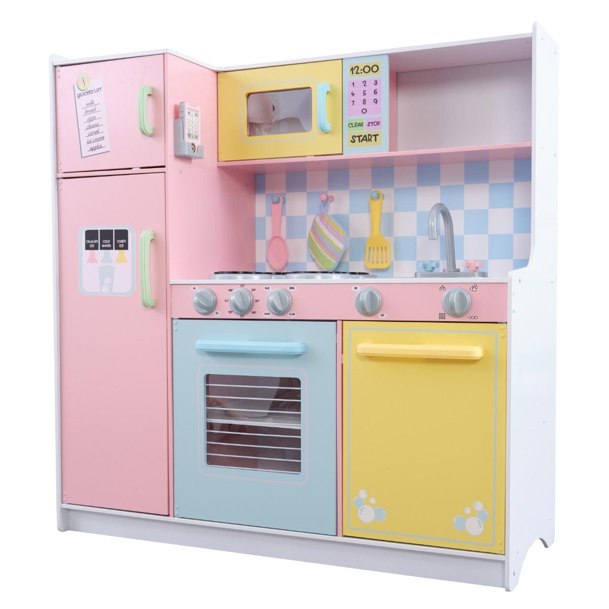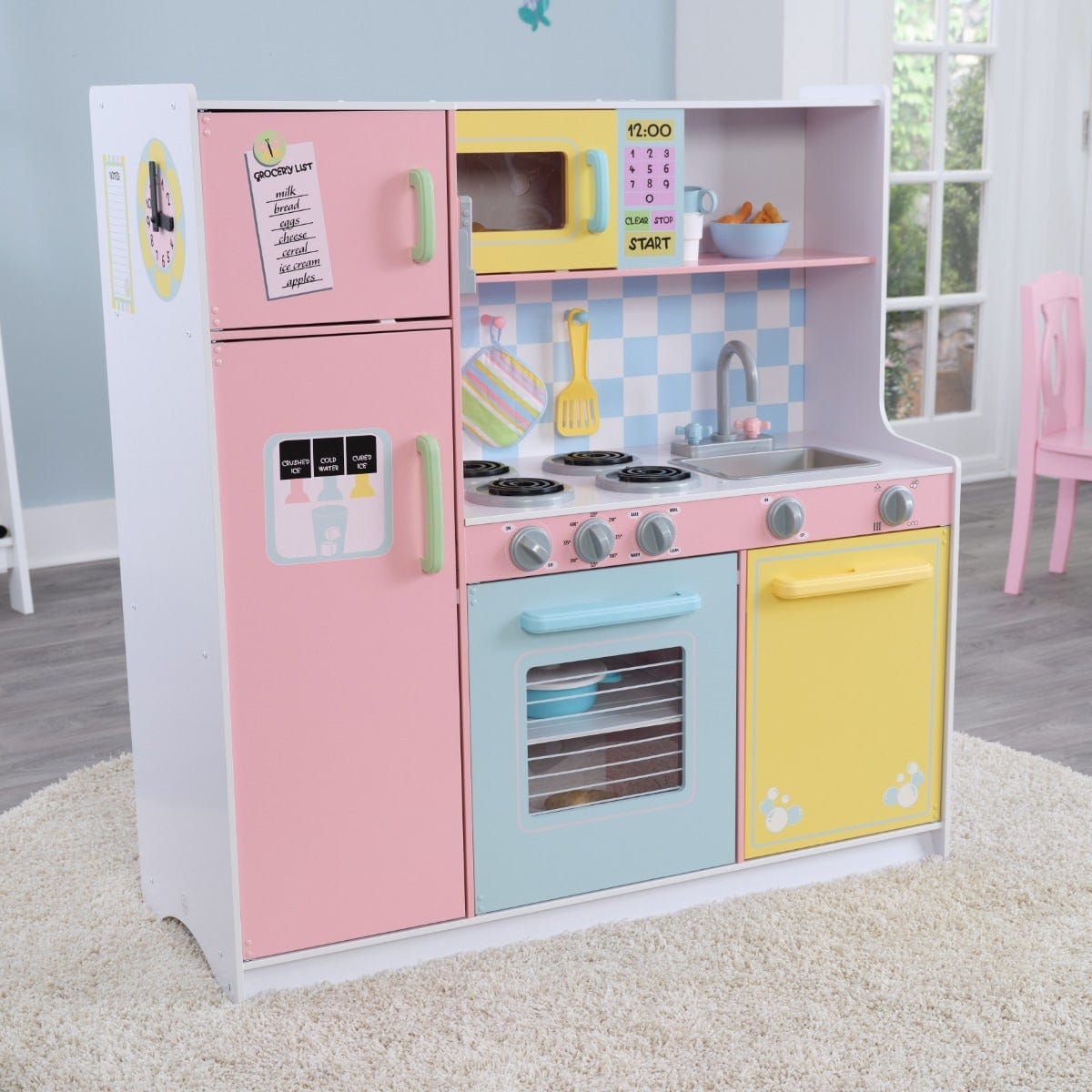 - Refrigerator, freezer, oven, cabinet, and microwave doors open and close for realistic play