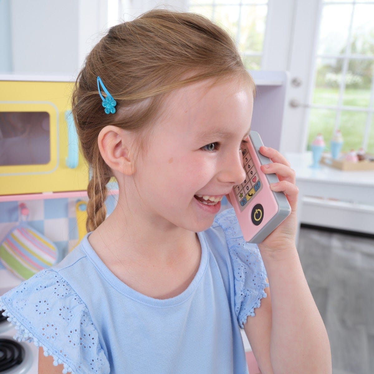 - Includes a cordless phone with a hands-free clip for added interactive fun