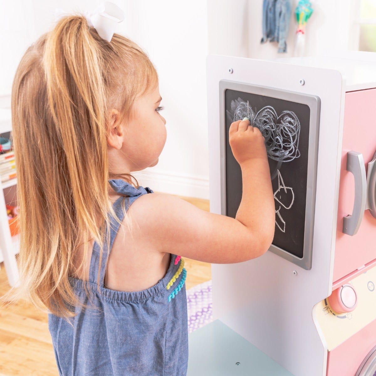 The SwingsetPlus Laundry Play Set provides children with a realistic and engaging way to imitate household laundry tasks, fostering imaginative play and practical learning. This child-sized stacking washer and dryer set is thoughtfully designed to accommodate interactive role play, encouraging kids to develop social and life skills through hands-on experience. The set includes essential accessories such as a play iron, laundry basket, shelving, and a chalkboard on the side, enhancing the overall play value. Constructed from durable wooden materials, this sturdy set ensures long-lasting use and reliability. It functions well as a standalone unit and complements other SwingsetPlus kitchen or role play products seamlessly. Introducing children to everyday responsibilities has never been more accessible or enjoyable.