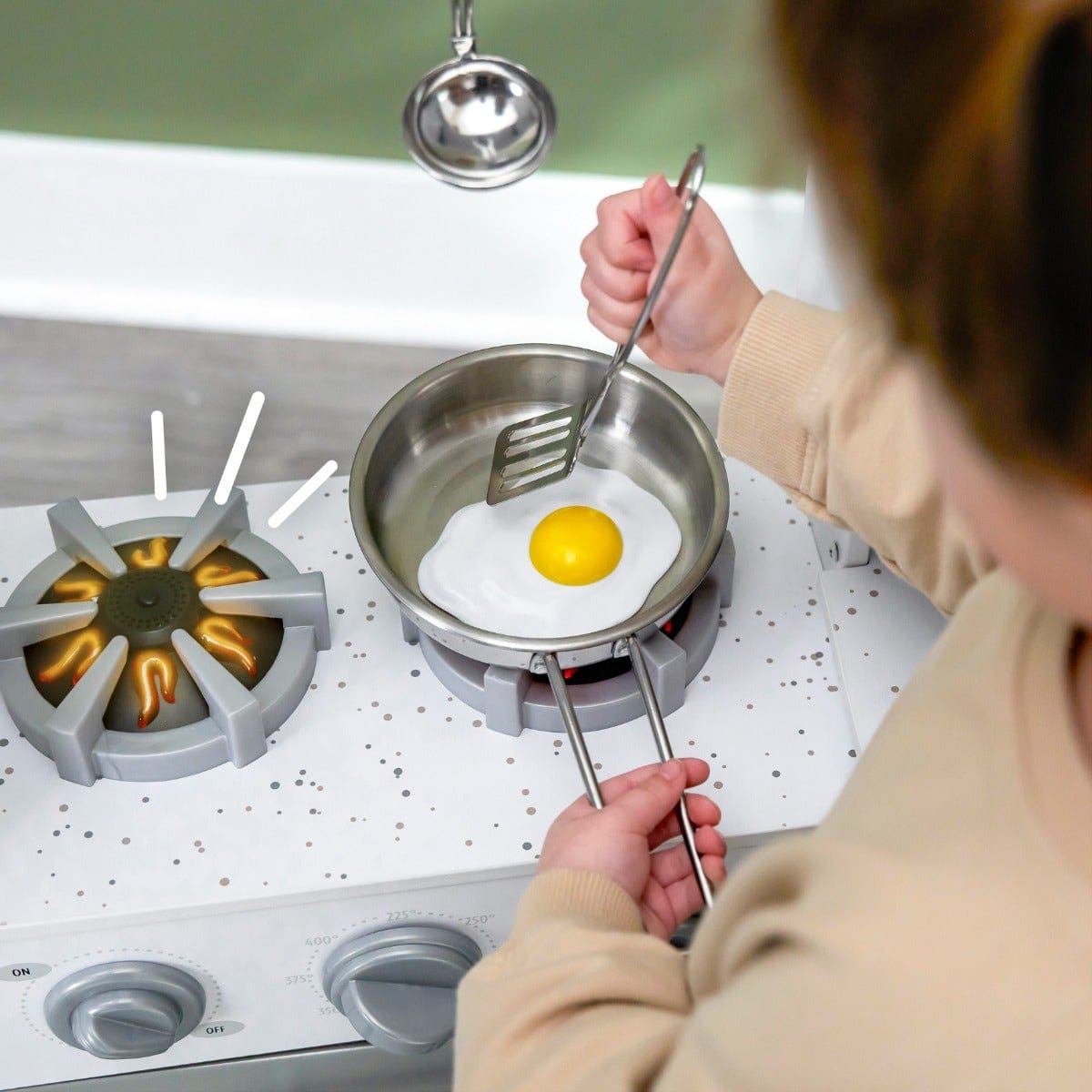 • Burners equipped with lights and authentic cooking sounds; water dispenser features illumination and realistic sound effects activated by press
