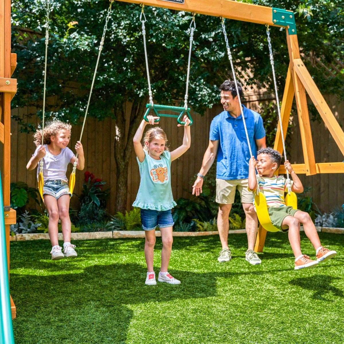 - Constructed from durable, premium wood materials to ensure safety, longevity, and aesthetic appeal, complemented by EZ Kraft Assembly™ for efficient setup and increased playtime