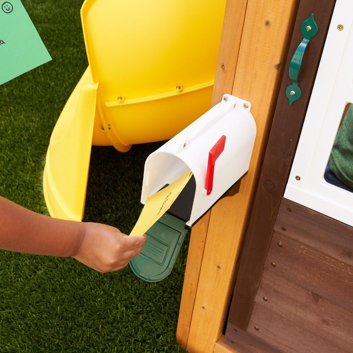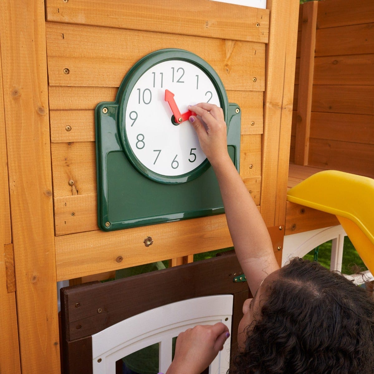 Designed with both aesthetics and longevity in mind, this playset features heavy-duty swing brackets, hangers, and beams to ensure structural integrity and safety. The inclusion of factory-assembled panels simplifies the setup process, supported by comprehensive step-by-step assembly instructions. Additional features such as a wall-mounted play mailbox, a working door, a clock with movable hands, and a play phone enrich the interactive experience, fostering imaginative play and social engagement.