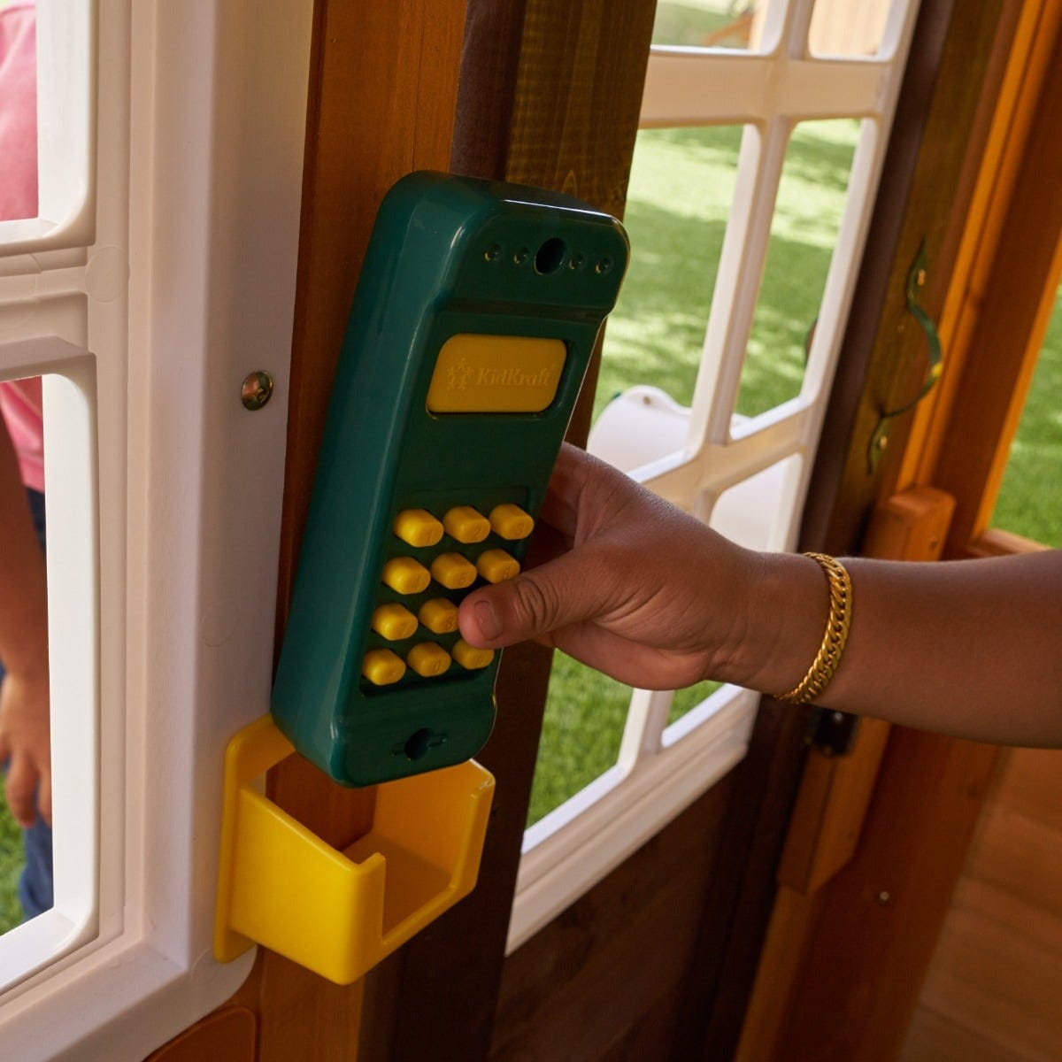 • Wall mounted play mailbox, working door, clock with movable hands and play phone