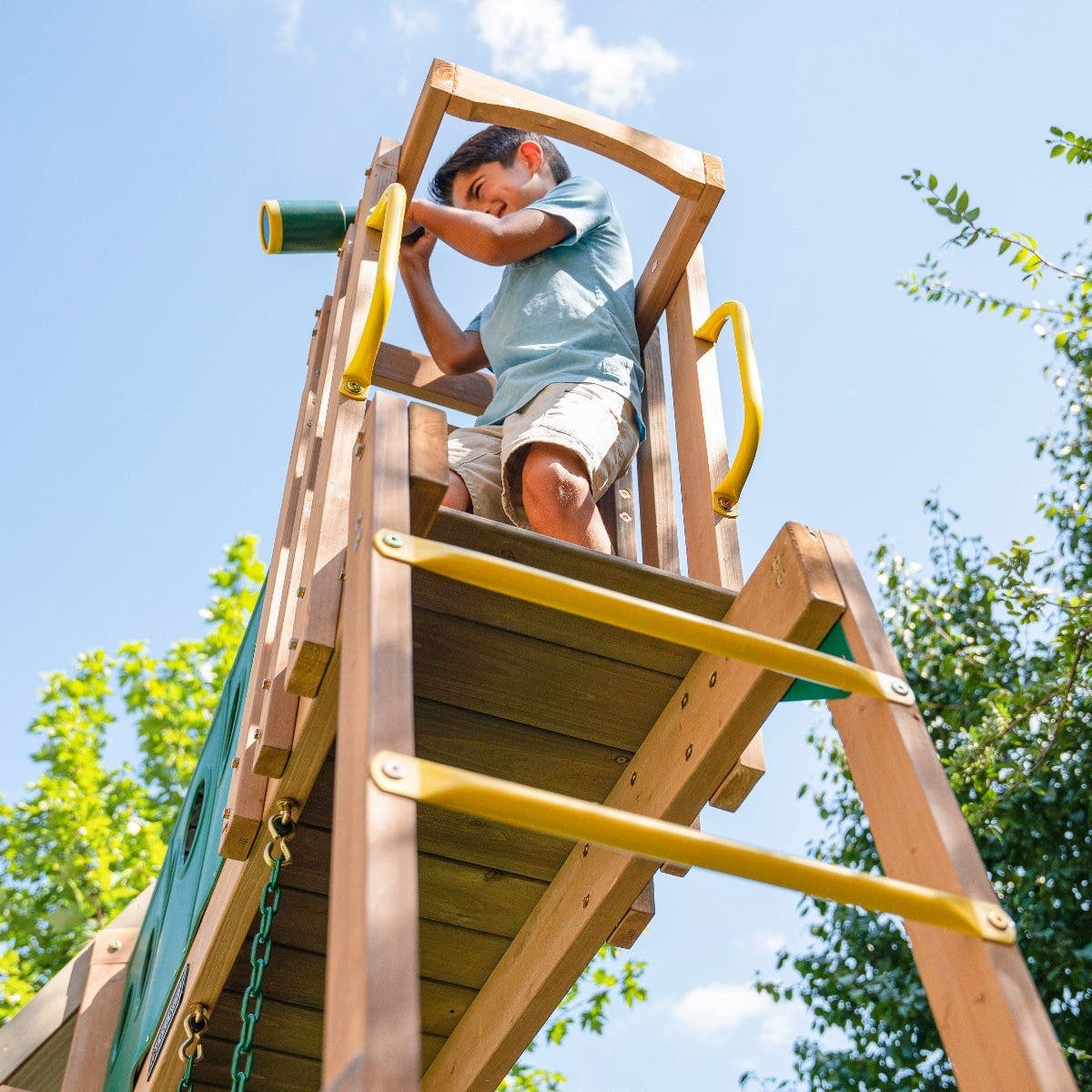 • Crow's nest equipped with a telescope, encouraging imaginative scenarios and observational skills