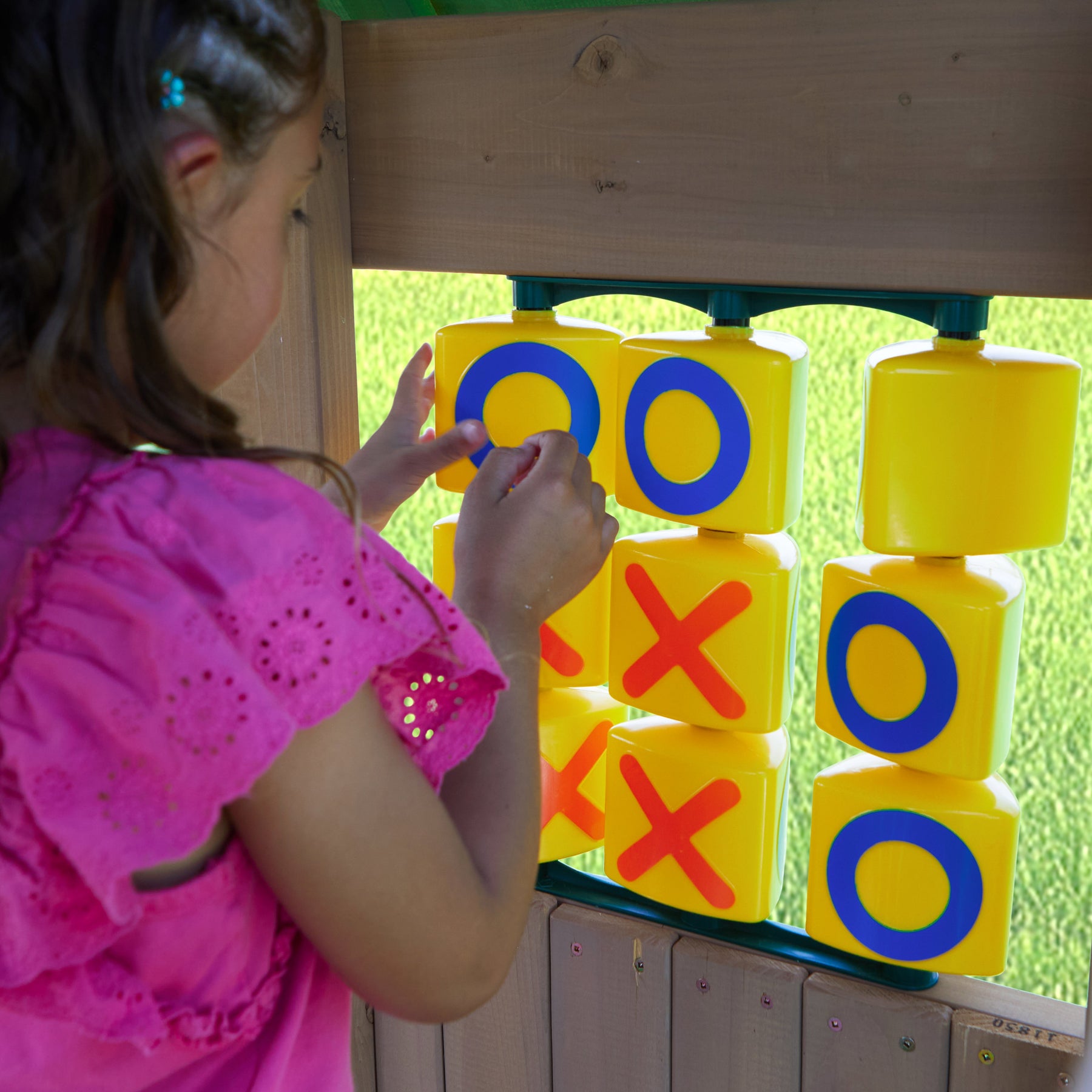 • Upper clubhouse is outfitted with a tic-tac-toe game and binoculars to encourage interactive play