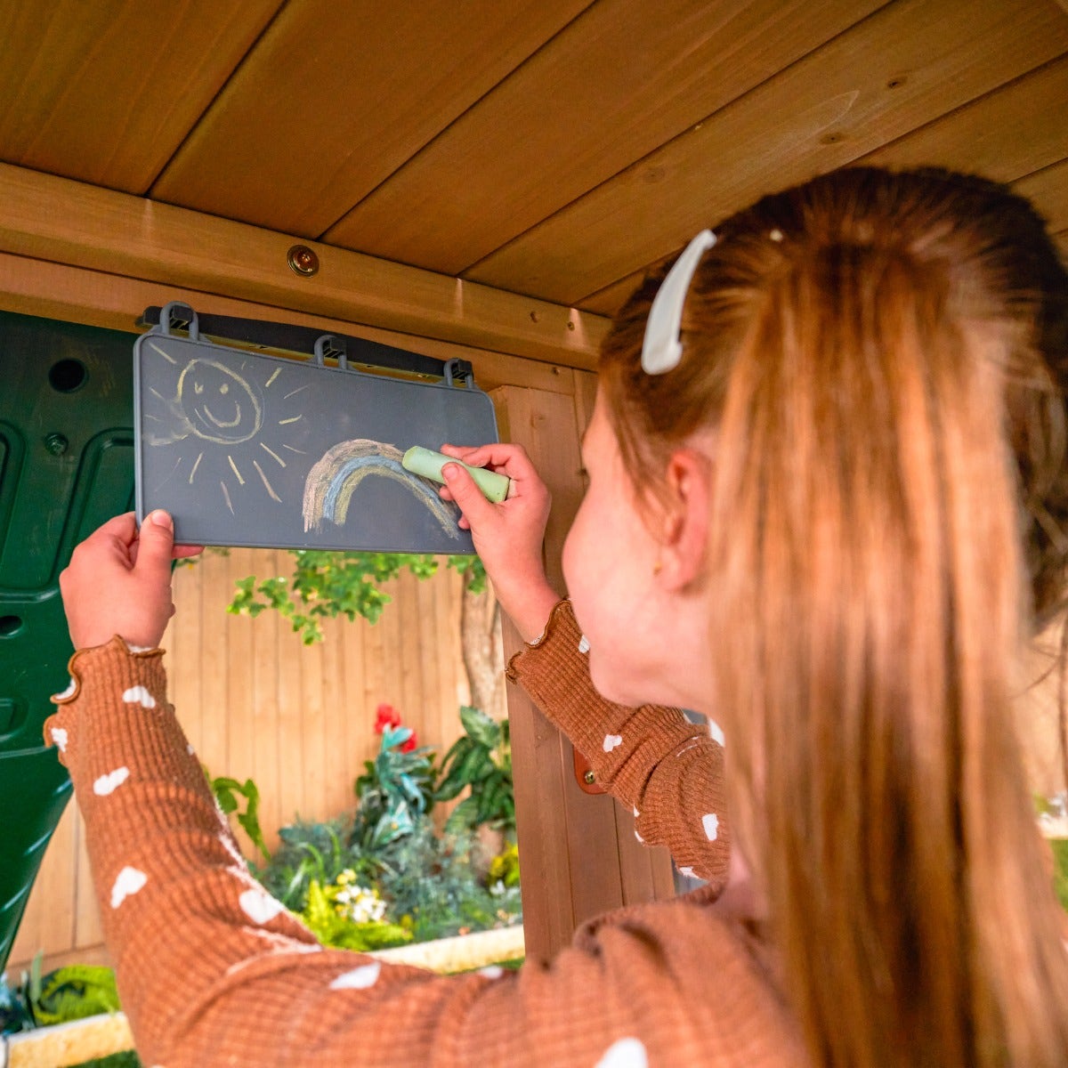 • Playhouse with a door and a role-play kitchen equipped with a grill and accessories to encourage imaginative play